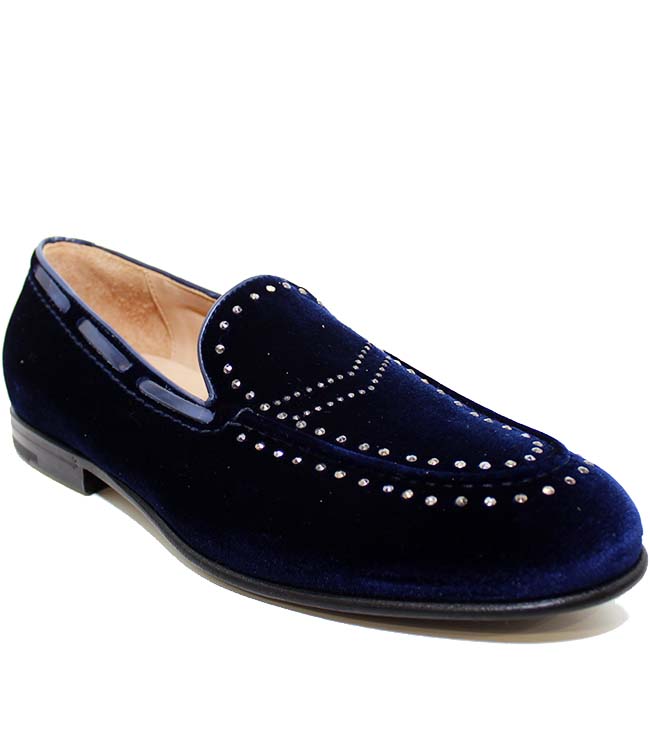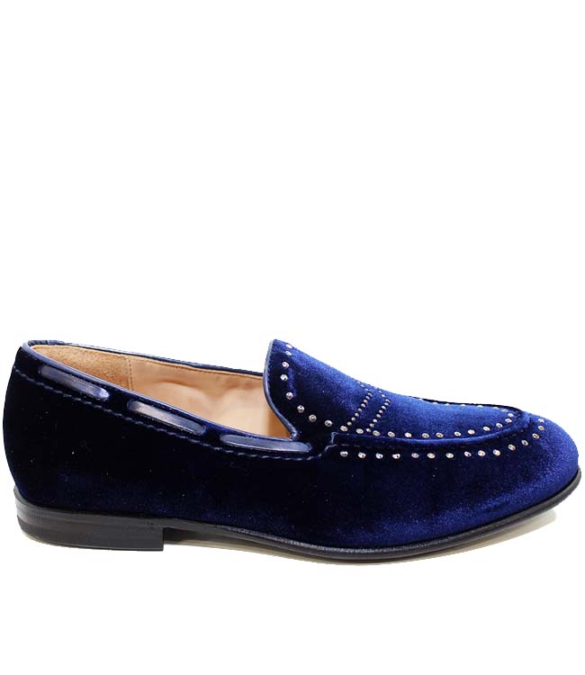 Mocassino in velluto con borchie.