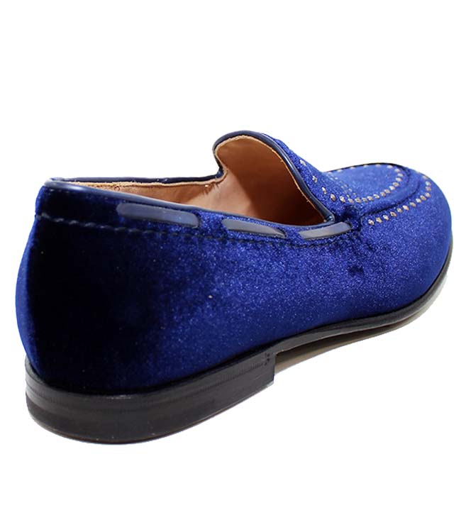 Moccasin in velvet with studs.